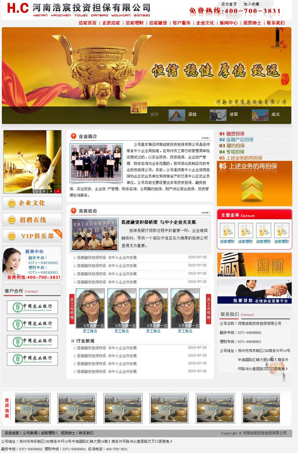 河南浩宸投資擔(dān)保有限公司是經(jīng)河南省中小企業(yè)局批準(zhǔn),在鄭州市工商行政管理局審批注冊成立的,以實業(yè)投資、投資擔(dān)保、企業(yè)資產(chǎn)管理、財務(wù)咨詢?yōu)闃I(yè)務(wù)范圍的,按市場化機制運作的專業(yè)投資擔(dān)保公司。目前,公司是河南中小企業(yè)信用擔(dān)保協(xié)會正式會員單位和河南省產(chǎn)權(quán)交易中心正式會員單位。公司目前主要經(jīng)營業(yè)務(wù)有投資擔(dān)保、融資擔(dān)保、實業(yè)投資、企業(yè)資 產(chǎn)管理、財務(wù)咨詢、合同履約擔(dān)保、財產(chǎn)訴訟保全擔(dān)保、投資管理咨詢服務(wù)。網(wǎng)站地址:http://www.hc4007003831.com