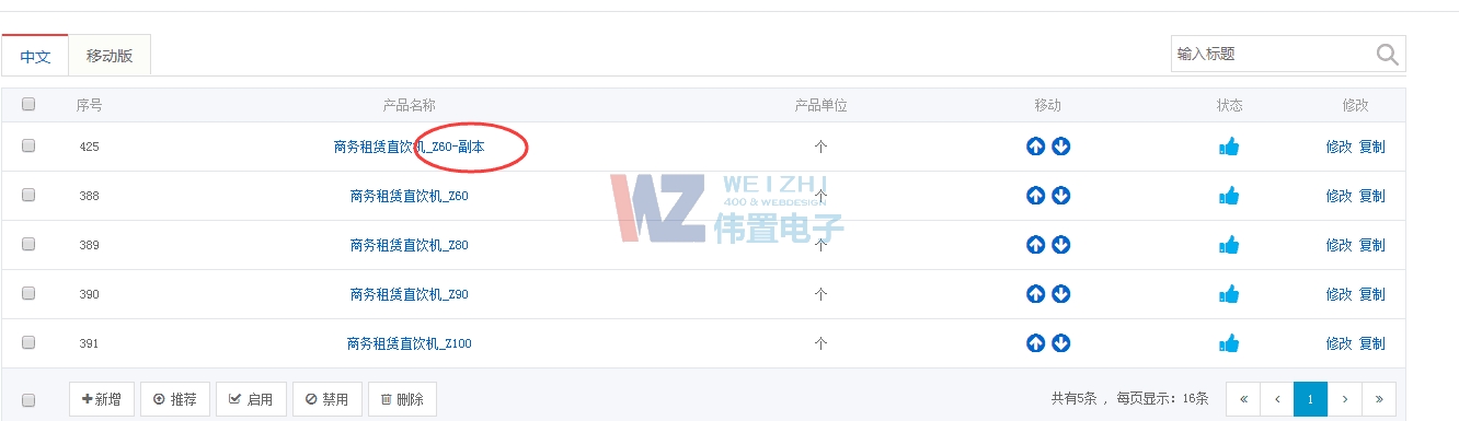 通常添加產(chǎn)品,會遇到同一個分類里,不同型號和尺寸產(chǎn)品,產(chǎn)品名稱與產(chǎn)品圖片不一樣,但產(chǎn)品其他信息都一樣,這個時候,可以點擊復(fù)制產(chǎn)品,會復(fù)制當(dāng)前產(chǎn)品所有信息,只需要替換產(chǎn)品名稱和圖片即可。
