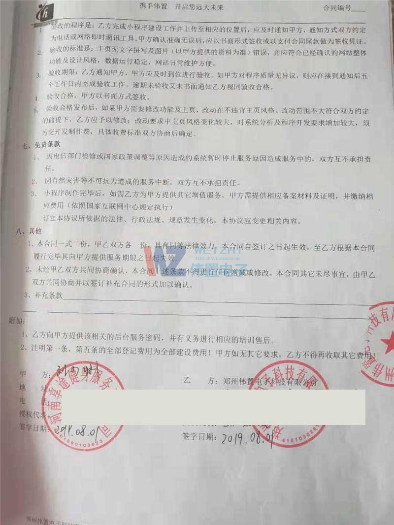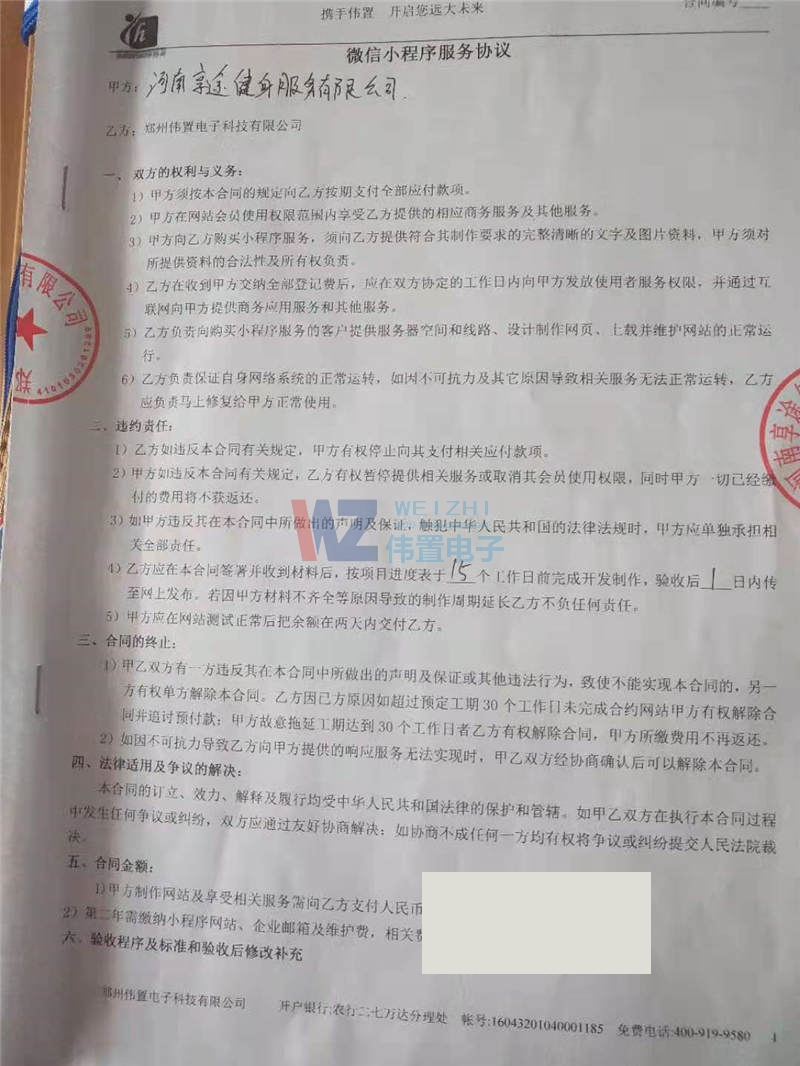 偉置電子、享途健身于簽單了小程序合作項(xiàng)目。下面是鄭州網(wǎng)站建設(shè)公司提供的享途健身公司的營業(yè)信息、小程序合作協(xié)議書。周所周知、小程序可以在微信內(nèi)被便捷地獲取和傳播,同時(shí)具有出色的使用體驗(yàn)。