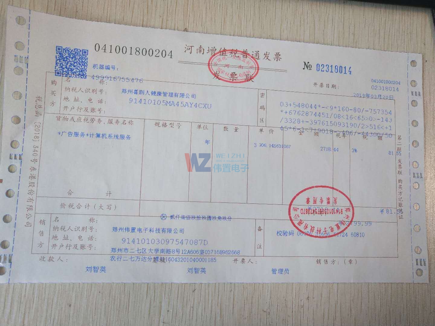 鄭州喜劇人健康管理發(fā)票物流信息